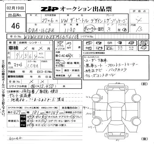 Volkswagen THE BEETLE с аукциона Японии ZIP Osaka лот № 46