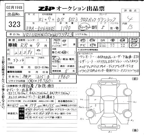 Citroen DS3 с аукциона Японии ZIP Osaka лот № 323