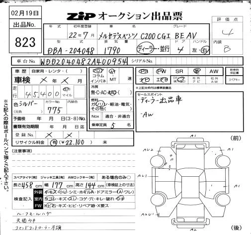 Mercedes-Benz C CLASS с аукциона Японии ZIP Osaka лот № 823