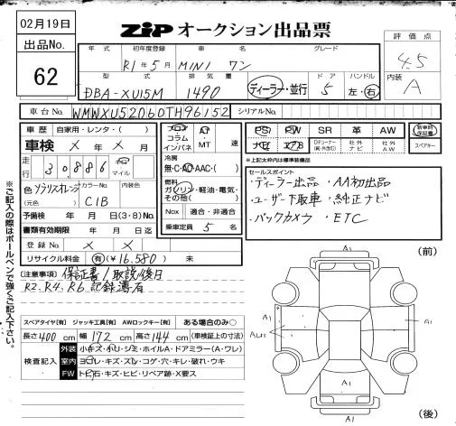 BMW MINI с аукциона Японии ZIP Osaka лот № 62