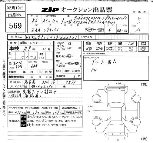 Mercedes-Benz AMG с аукциона Японии ZIP Osaka лот № 569