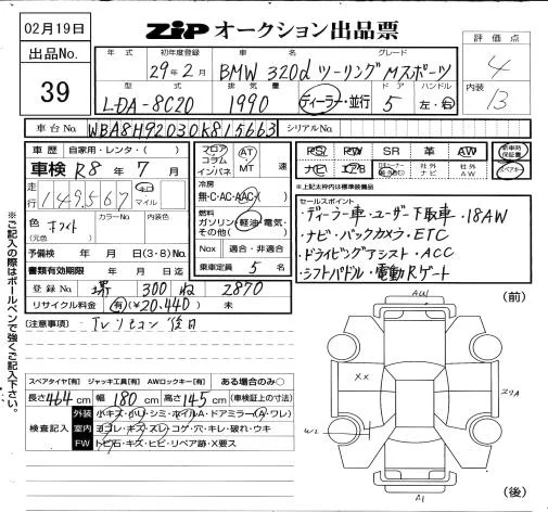 BMW 3-Series с аукциона Японии ZIP Osaka лот № 39
