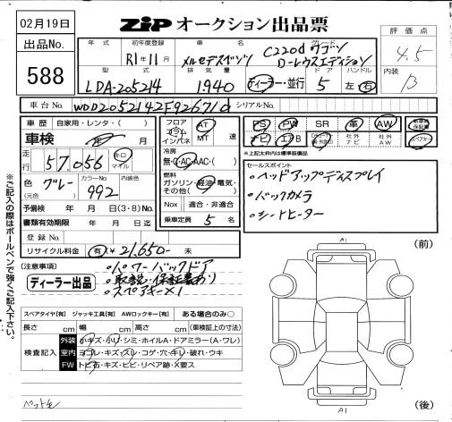 Mercedes-Benz C CLASS WAGON с аукциона Японии ZIP Osaka лот № 588