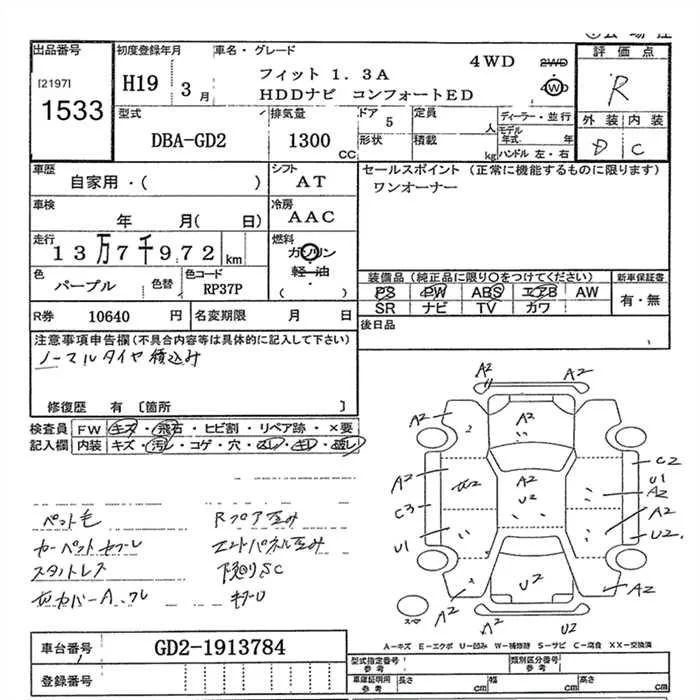 Honda FIT с аукциона Японии JU Gunma лот № 1533