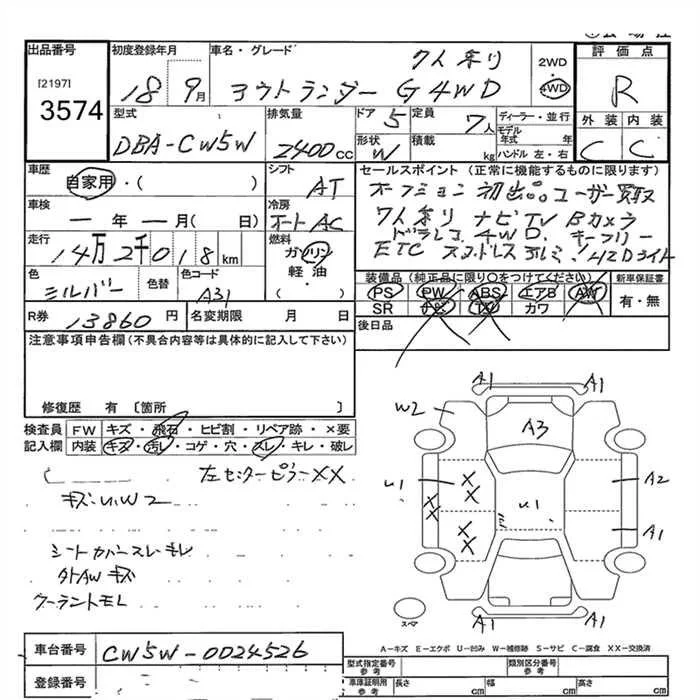 Mitsubishi OUTLANDER с аукциона Японии JU Gunma лот № 3574