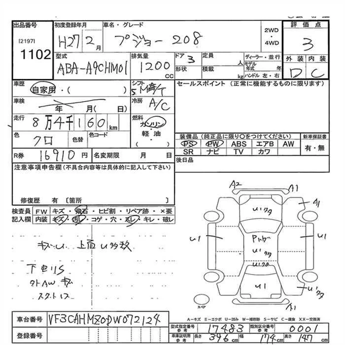 Peugeot 208 с аукциона Японии JU Gunma лот № 1102