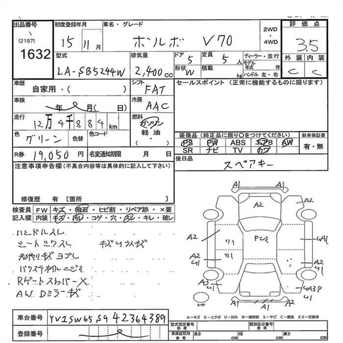 Volvo V70 с аукциона Японии JU Gunma лот № 1632