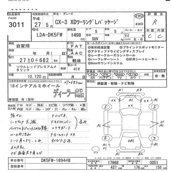 Mazda CX-3 с аукциона Японии JU Miyazaki лот № 3011