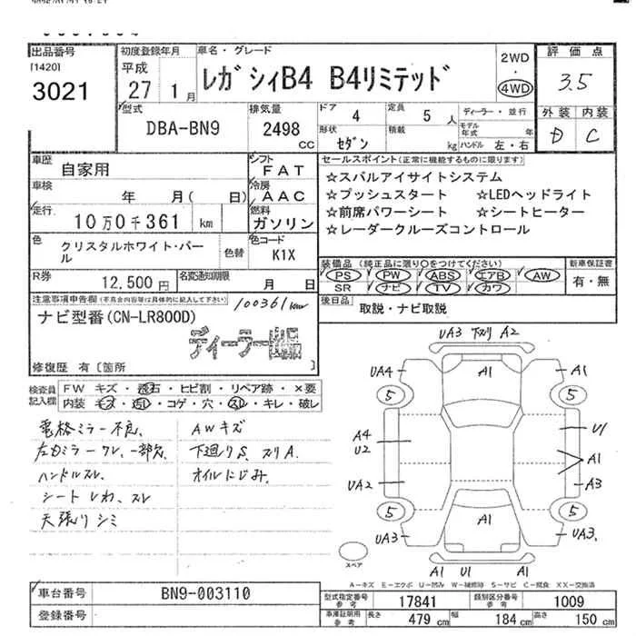 Subaru LEGACY B4 с аукциона Японии JU Miyazaki лот № 3021