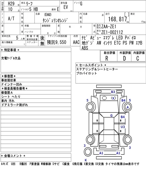 Nissan LEAF с аукциона Японии NAA Nagoya лот № 8004