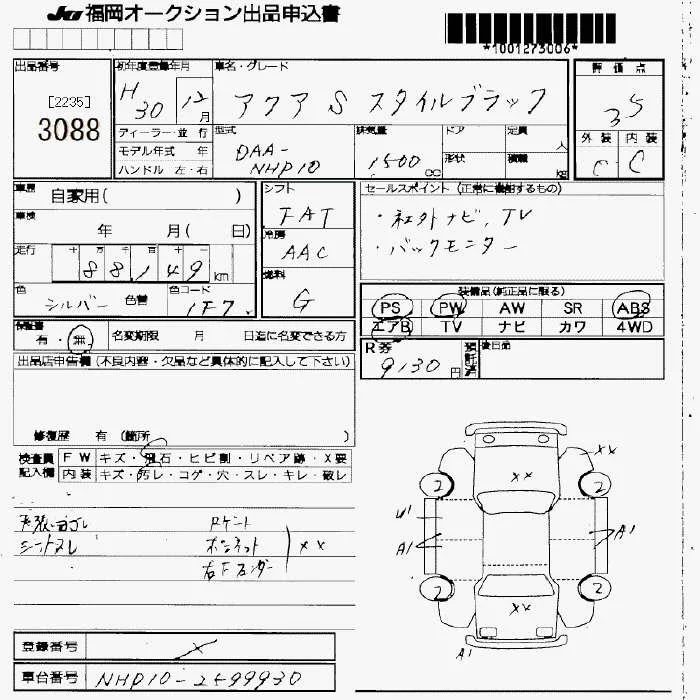 Toyota AQUA с аукциона Японии JU Fukuoka лот № 3088