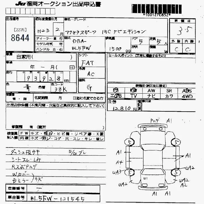 Mazda AXELA с аукциона Японии JU Fukuoka лот № 8644