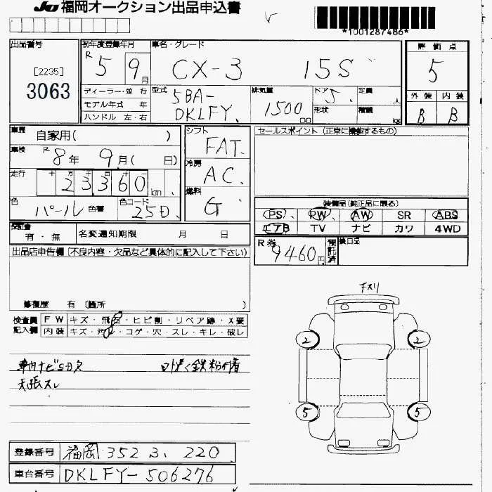 Mazda CX-3 с аукциона Японии JU Fukuoka лот № 3063