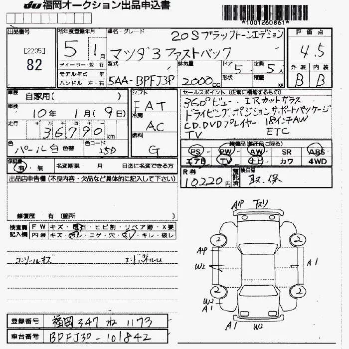 Mazda MAZDA3 с аукциона Японии JU Fukuoka лот № 82