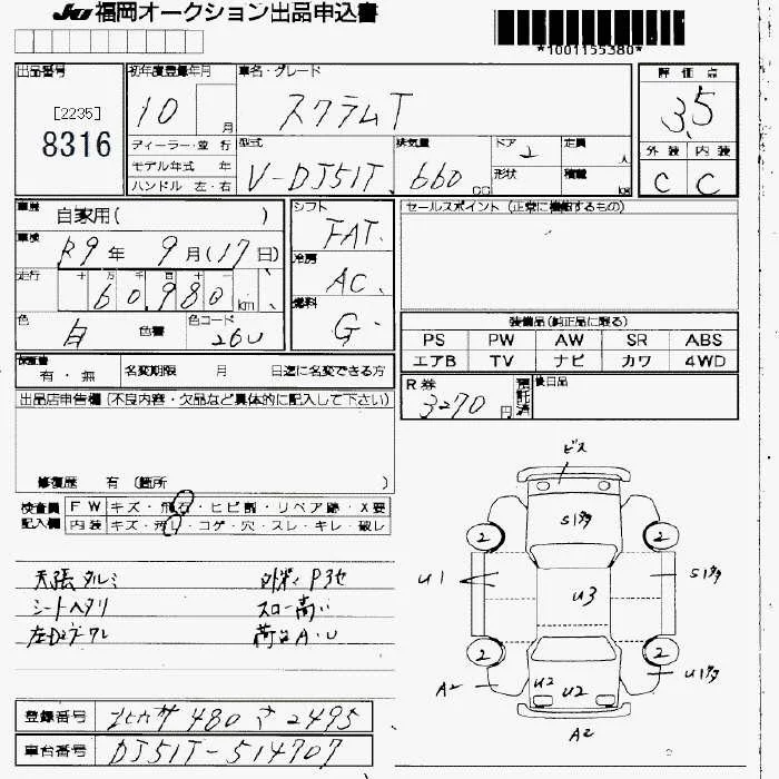 Mazda SCRUM TRUCK с аукциона Японии JU Fukuoka лот № 8316