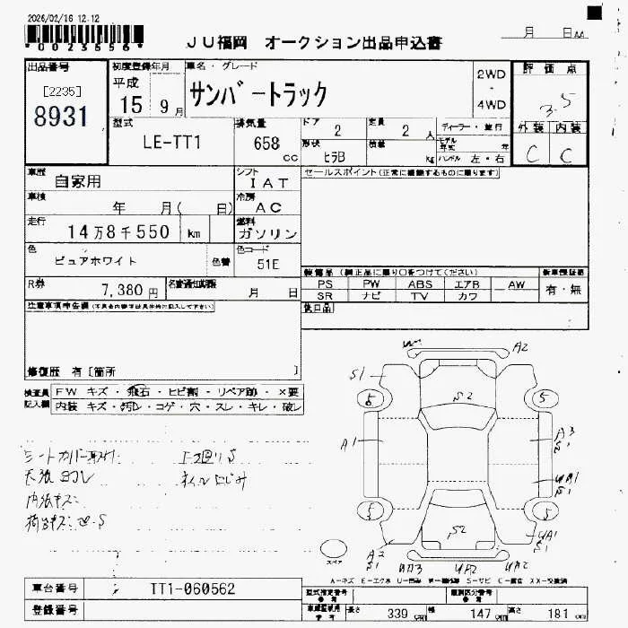 Subaru SAMBAR с аукциона Японии JU Fukuoka лот № 8931