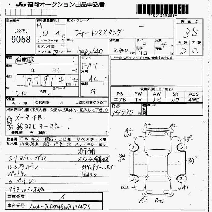 Ford MUSTANG с аукциона Японии JU Fukuoka лот № 9058