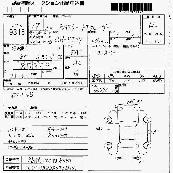 Chrysler PT Cruiser с аукциона Японии JU Fukuoka лот № 9316