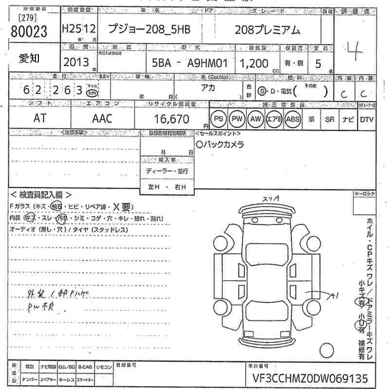 Peugeot 208 с аукциона Японии MIRIVE Aichi лот № 80023