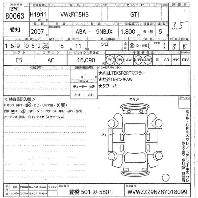 Volkswagen POLO с аукциона Японии MIRIVE Aichi лот № 80063