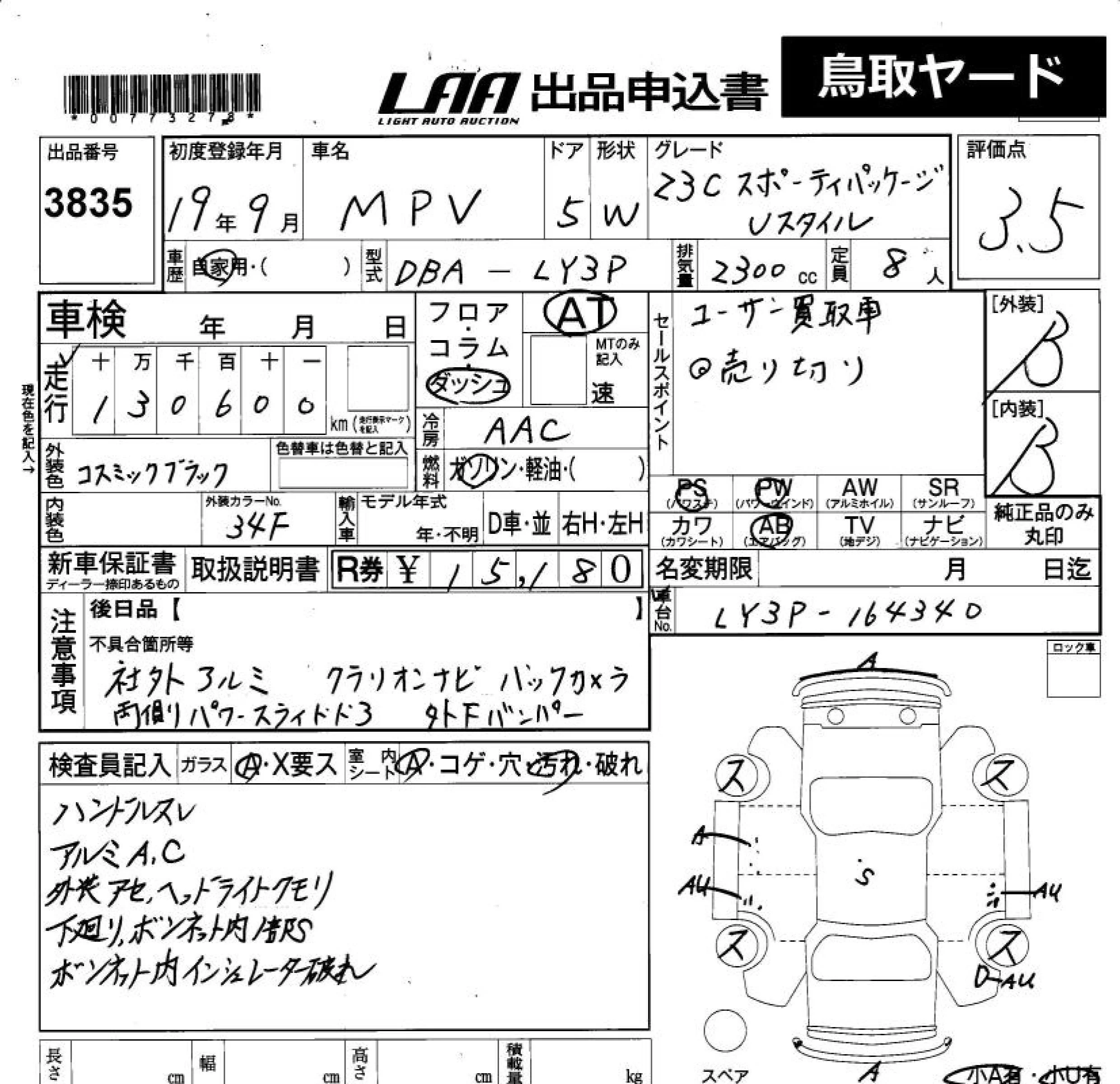 Mazda MPV с аукциона Японии LAA Okayama лот № 3835