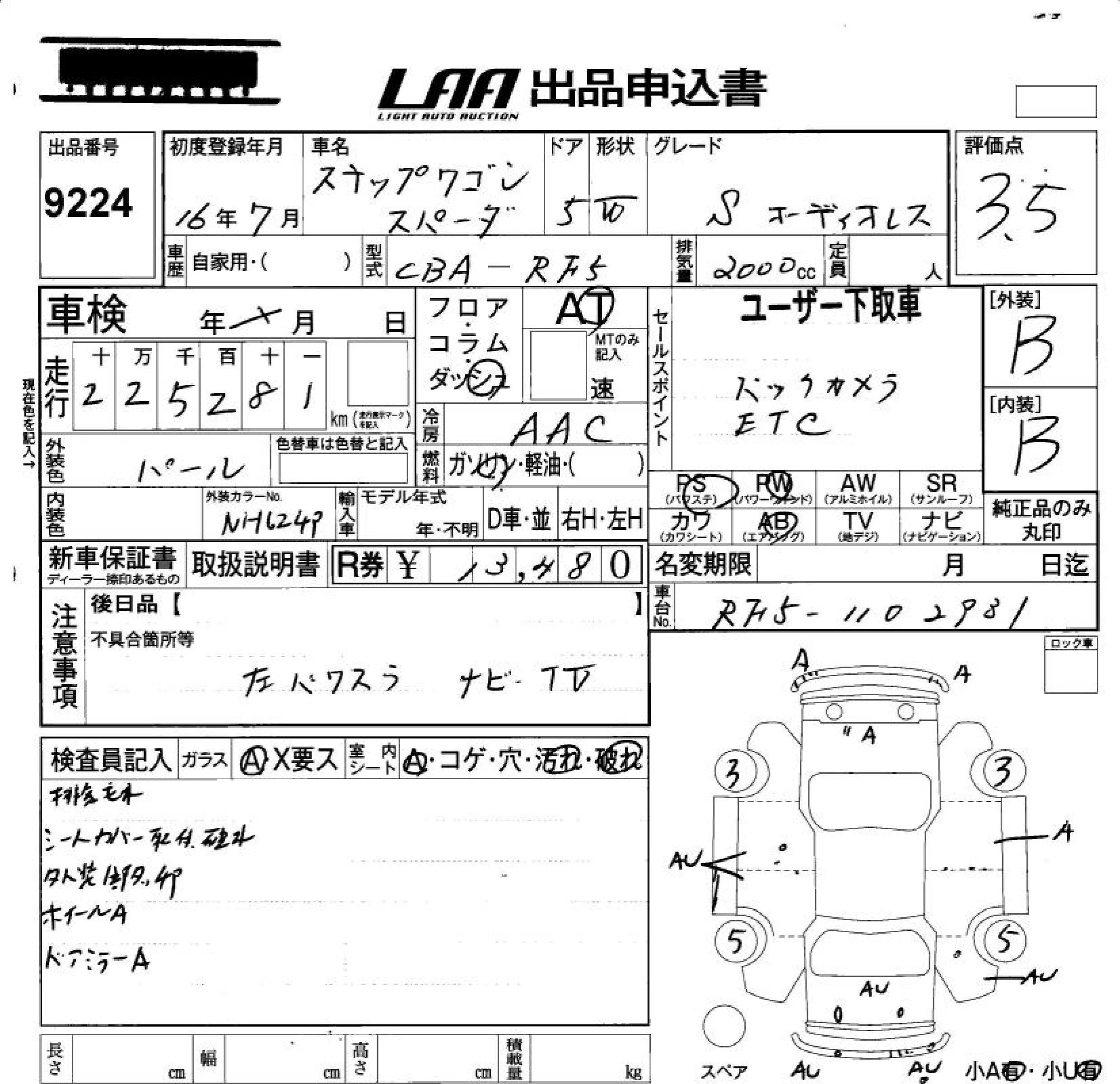 Honda STEP WAGON с аукциона Японии LAA Okayama лот № 9224