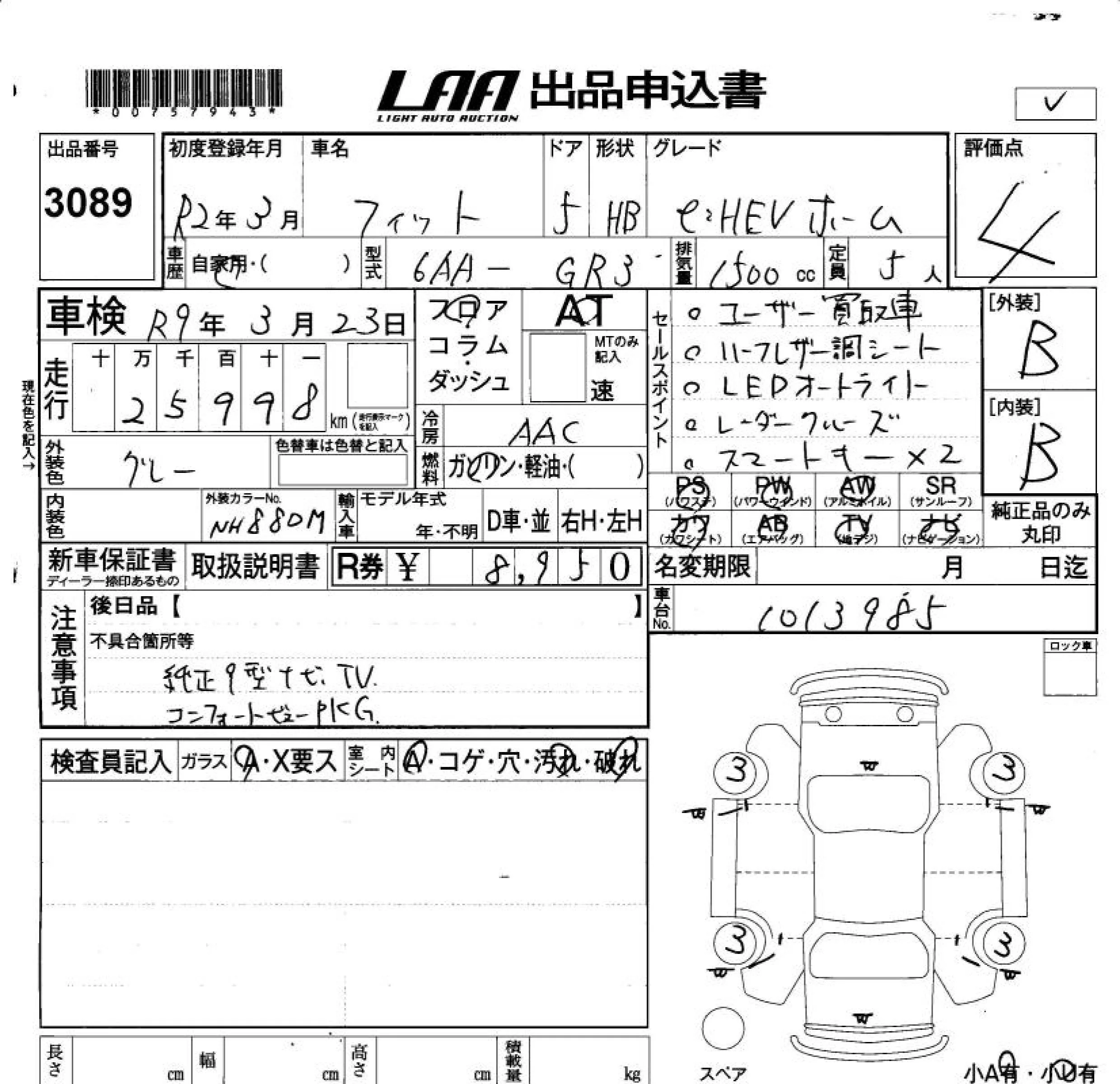 Honda FIT с аукциона Японии LAA Okayama лот № 3089