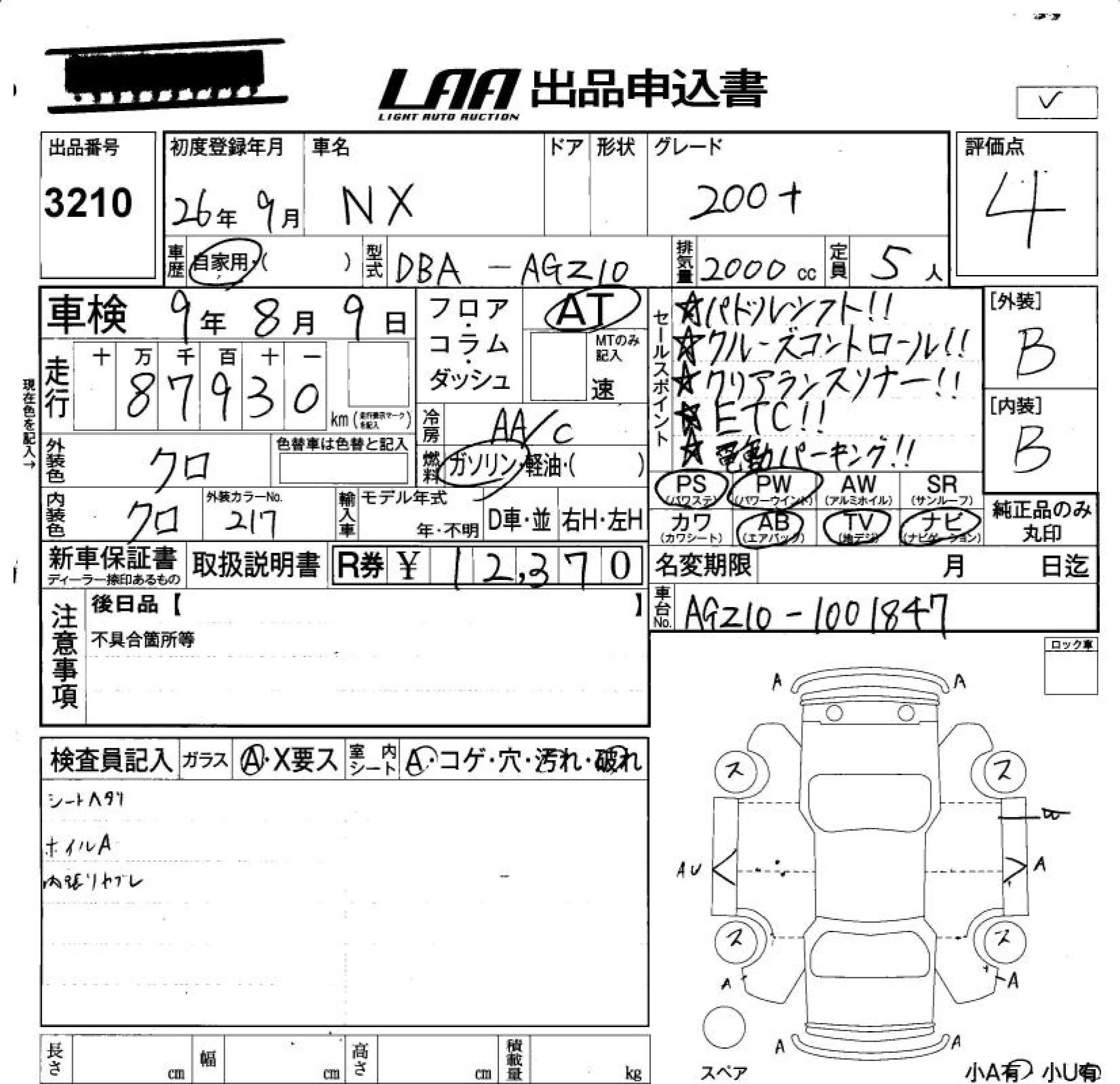 Lexus NX с аукциона Японии LAA Okayama лот № 3210