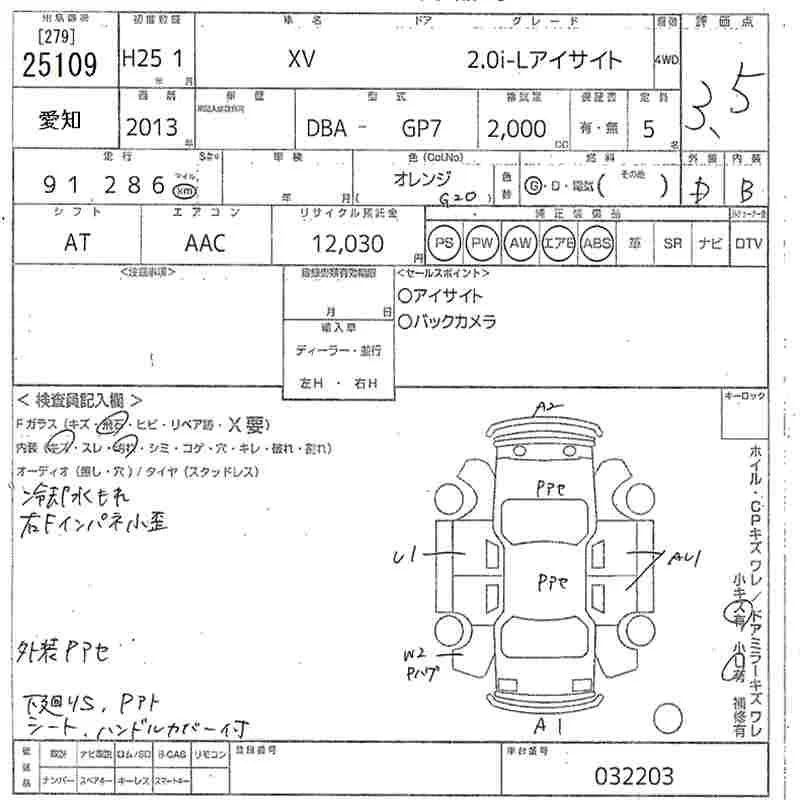 Subaru XV с аукциона Японии MIRIVE Aichi лот № 25109