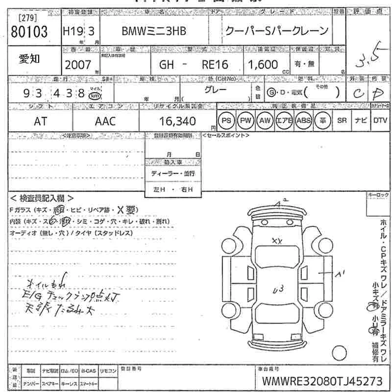 BMW MINI с аукциона Японии MIRIVE Aichi лот № 80103