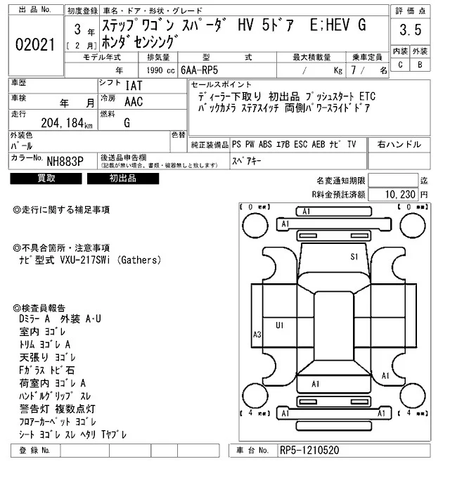 Honda STEP WAGON с аукциона Японии ARAI Bayside лот № 2021