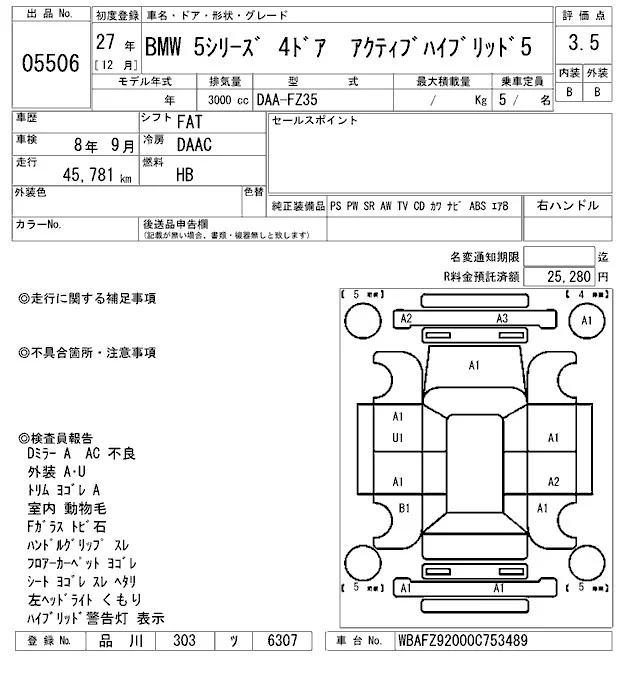 BMW 5-Series с аукциона Японии ARAI Bayside лот № 5506