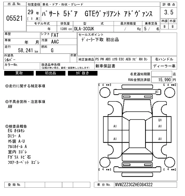 Volkswagen PASSAT VARIANT с аукциона Японии ARAI Bayside лот № 5521