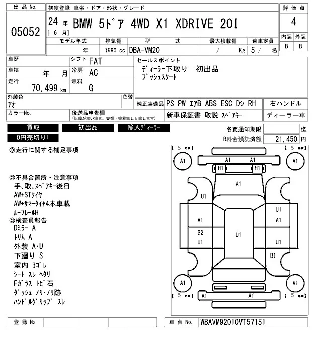 BMW X1 с аукциона Японии ARAI Bayside лот № 5052