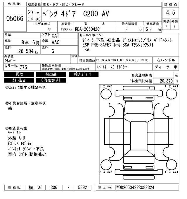 Mercedes-Benz C CLASS с аукциона Японии ARAI Bayside лот № 5066