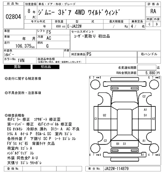 Suzuki JIMNY с аукциона Японии ARAI Bayside лот № 2804