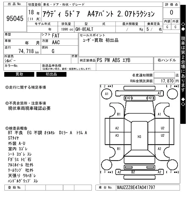 Audi A4 с аукциона Японии ARAI Bayside лот № 95045