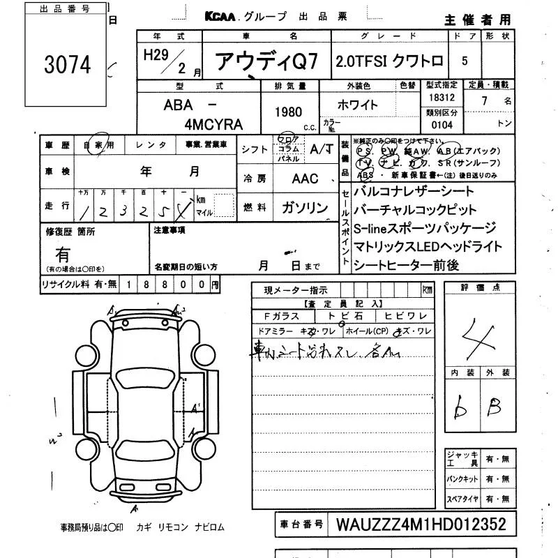 Audi Q7 с аукциона Японии KCAA Yamaguchi лот № 3074