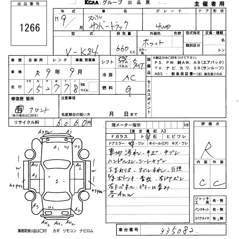Subaru SAMBAR с аукциона Японии KCAA Yamaguchi лот № 1266