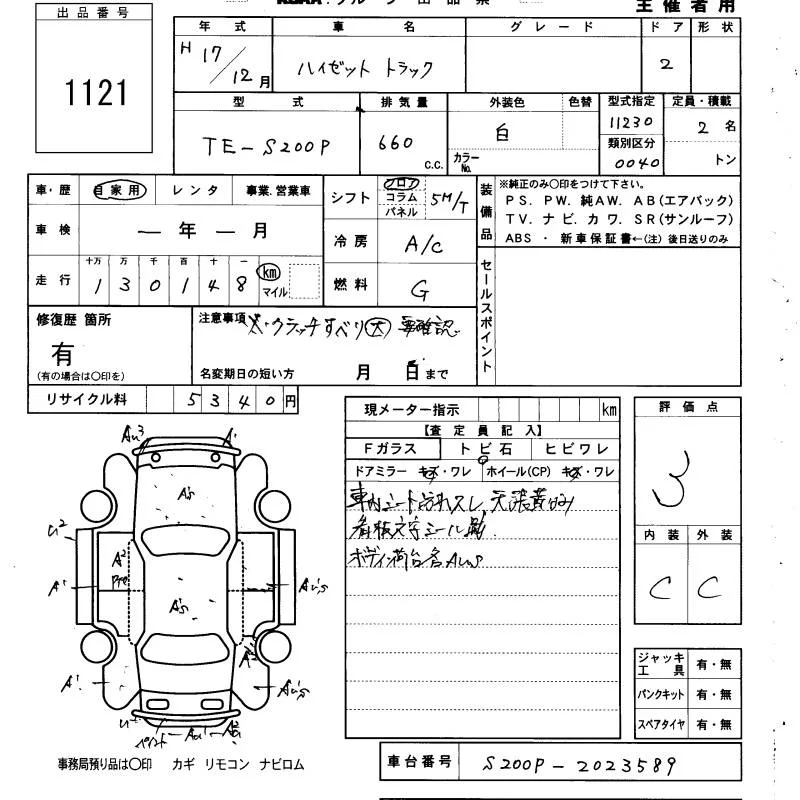 Daihatsu HIJET TRUCK с аукциона Японии KCAA Yamaguchi лот № 1121