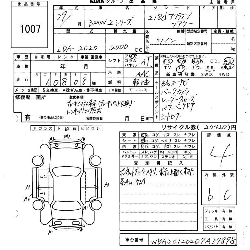 BMW 2-Series с аукциона Японии KCAA Yamaguchi лот № 1007