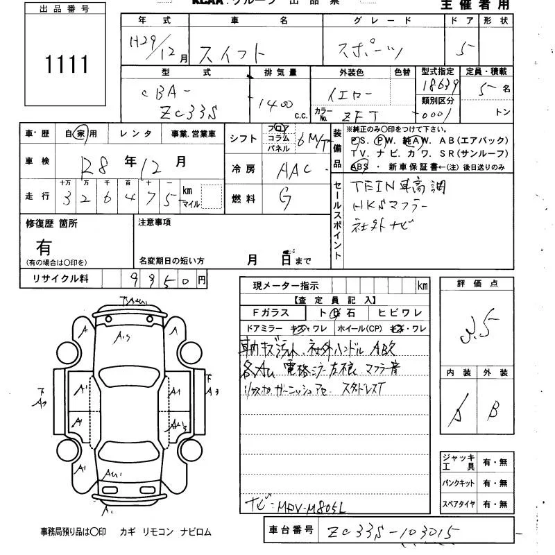 Suzuki SWIFT с аукциона Японии KCAA Yamaguchi лот № 1111