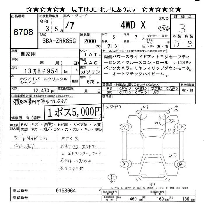 Toyota NOAH с аукциона Японии JU Hokkaido лот № 6708
