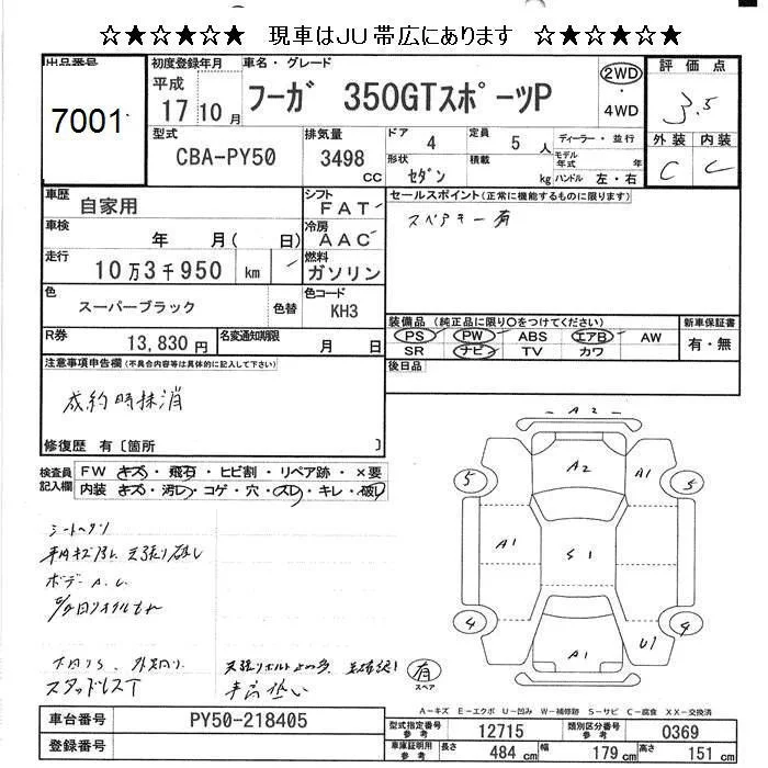 Nissan FUGA с аукциона Японии JU Hokkaido лот № 7001