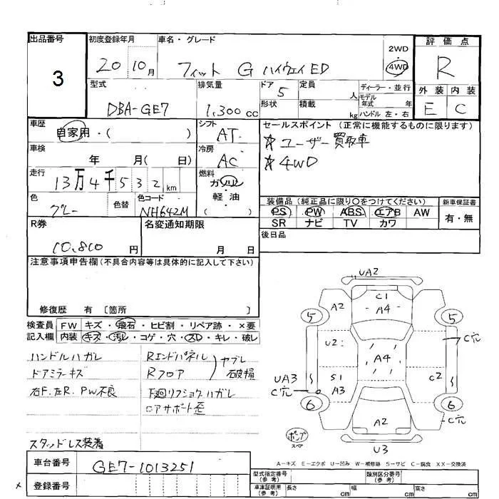Honda FIT с аукциона Японии JU Hokkaido лот № 3