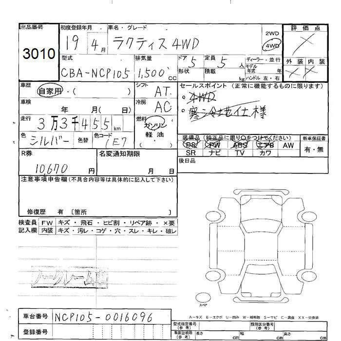 Toyota RACTIS с аукциона Японии JU Hokkaido лот № 3010