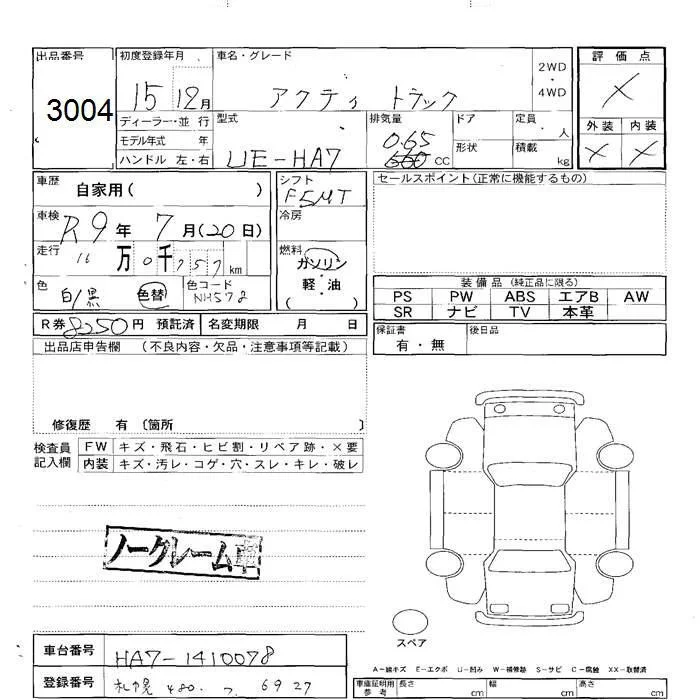 Honda ACTY TRUCK с аукциона Японии JU Hokkaido лот № 3004