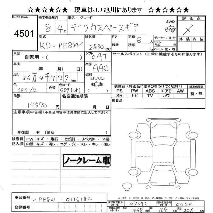 Mitsubishi DELICA с аукциона Японии JU Hokkaido лот № 4501