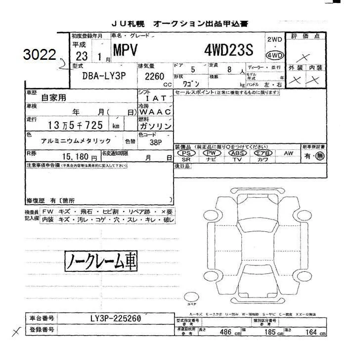 Mazda MPV с аукциона Японии JU Hokkaido лот № 3022