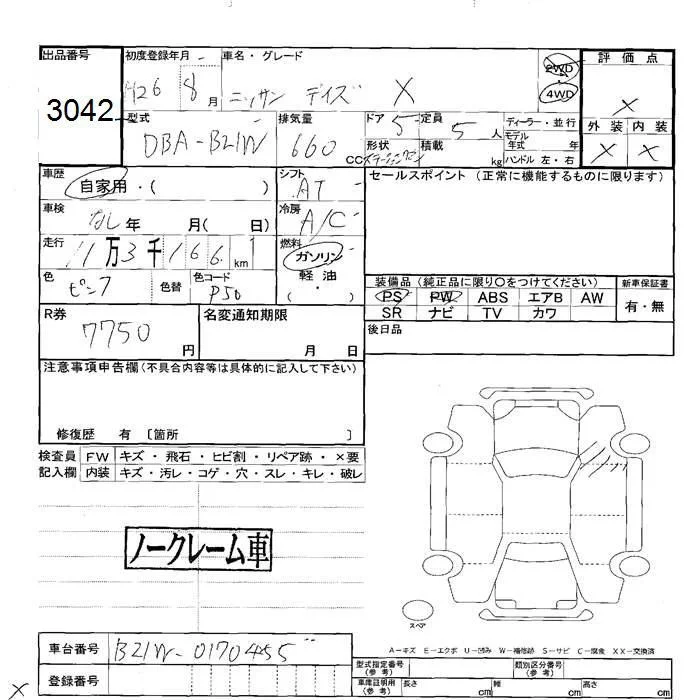 Nissan DAYZ с аукциона Японии JU Hokkaido лот № 3042